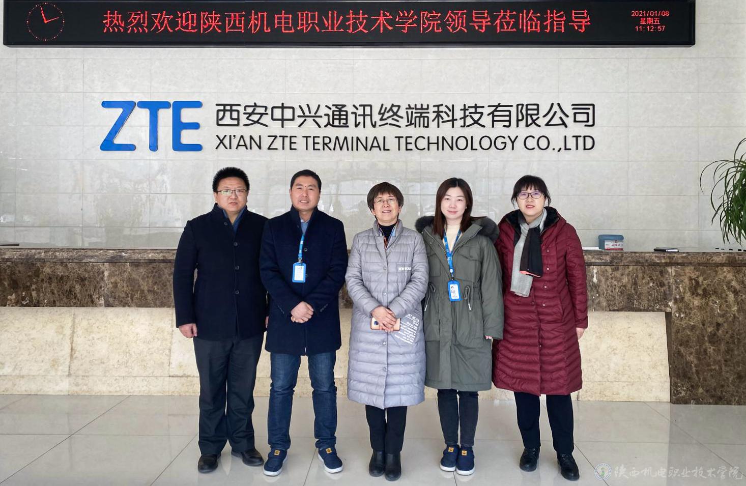 2021年1月8日,陕西机电职业技术学院副院长徐圣月、招生就业处副处长满春燕、校企合作处副处长田正本等一行赴西安中兴通讯终端科技有限公司进行就业回访及参观考察。中兴通讯西安生产部综合科科长杨峰、中兴通讯人力资源部招聘经理李晗、西安生产部SMT贴片段综合主管刘丹等接待了徐圣月一行。