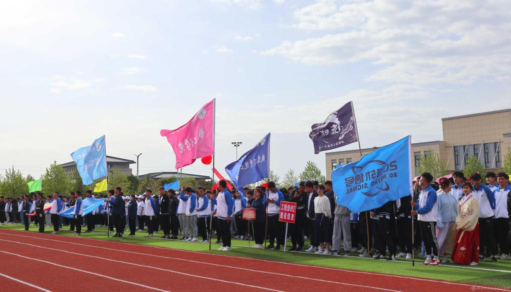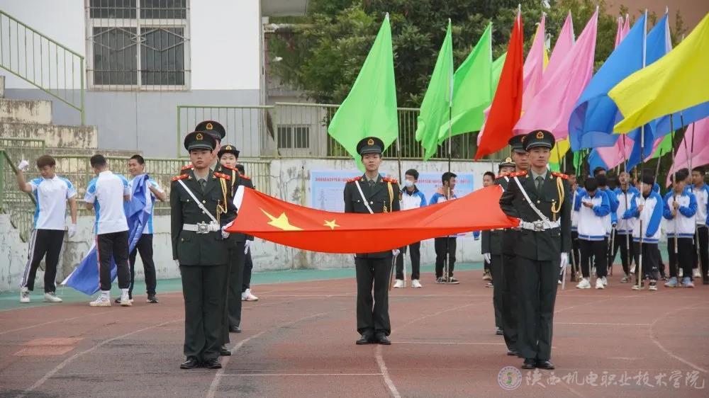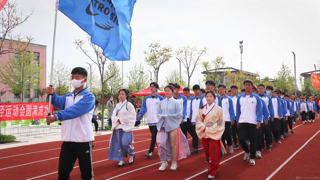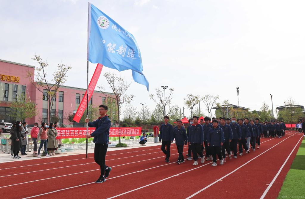 当前,陕西机电职业技术学院全校上下正在深入开展党史学习教育,使今年的春季运动会开幕式呈现出鲜明的党史学习教育成果,展现出昂扬奋进的精神风貌。学院一直以来大力开展阳光体育活动,隆重举办运动会,目的是引导广大同学“走下网络、走出宿舍、走向操场”,坚持“健康向上、不懈奋斗”的体育精神,使坚持体育锻炼成为青年大学生的生活方式和健康时尚。希望全体运动员赛出水平,赛出风格!以优异成绩迎接中国共产党成立100周年。