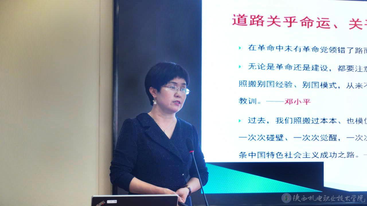 5月12日下午,陕西机电职业技术学院开展党史学习教育专题讲座。特邀宝鸡市委党校杨娟珍副教授为全校党员作题为《来之不易的选择——从社会主义建设史看道路自信》的讲座。党委宣传部部长、党史学习教育领导小组办公室主任李明主持。