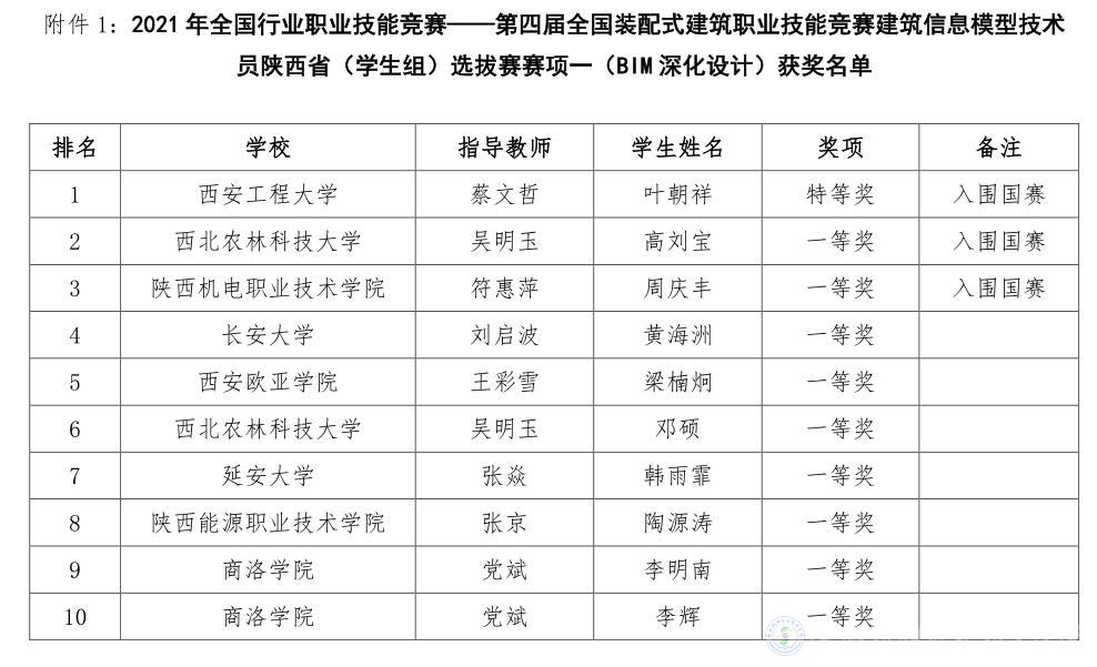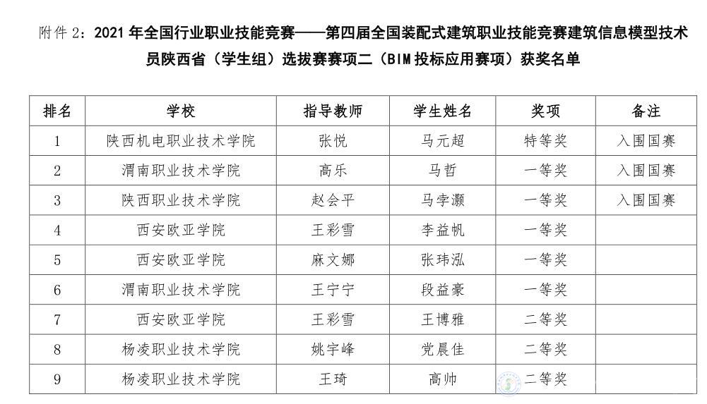 由陕西省建设教育协会主办、陕西机电职业技术学院承办,杭州品茗安控信息技术股份有限公司、廊坊市中科建筑产业化创新研究中心协办的2021年全国行业职业技能竞赛一第四届全国装配式建筑职业技能竞赛(学生组)陕西省选拔赛于2021年10月22日在线上隆重举行。大赛共分为BIM深化设计,BIM投标应用,BIM项目管理三个模块。我院派出符惠萍、张悦、陈丽萍三个老师分别辅导三名学生参加三个模块的比赛,与来自全省28所本、专科院校,265名选手进行了激烈角逐。