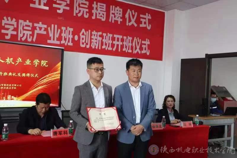 2022年4月21日,我校在蟠龙校区举行陕机电职院-陕西壹控智飞产业学院揭牌及开班典礼。宝鸡市蟠龙新区管委会主任唐军科、副主任任海龙、招商局副局长李俊,陕西壹控智飞智能科技有限公司董事长刘罡、总经理李海涛、行政总监马琳、教学主管李超康出席会议。陕西机电职业技术学院党委副书记、校长向纪明,党委委员、副校长张克以及党委宣传部、招就处、校企合作处、汽车工程学院、智能制造学院等部门负责人、专业教师代表和学生代表,宝鸡电视台、宝鸡广播电台、宝鸡日报、宝鸡新闻网等媒体列席此次会议,会议由汽车工程学院院长李靖主持。
