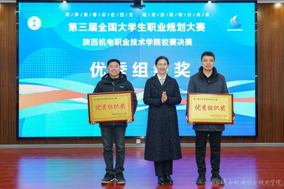 颁奖环节,校领导、大赛评委及相关职能部门负责人共同为获奖选手、优秀指导教师颁发荣誉证书,为荣获 “职业规划大赛优秀组织奖” 的交通运输学院、电子信息学院授牌。领导们对获奖集体与个人表示祝贺。