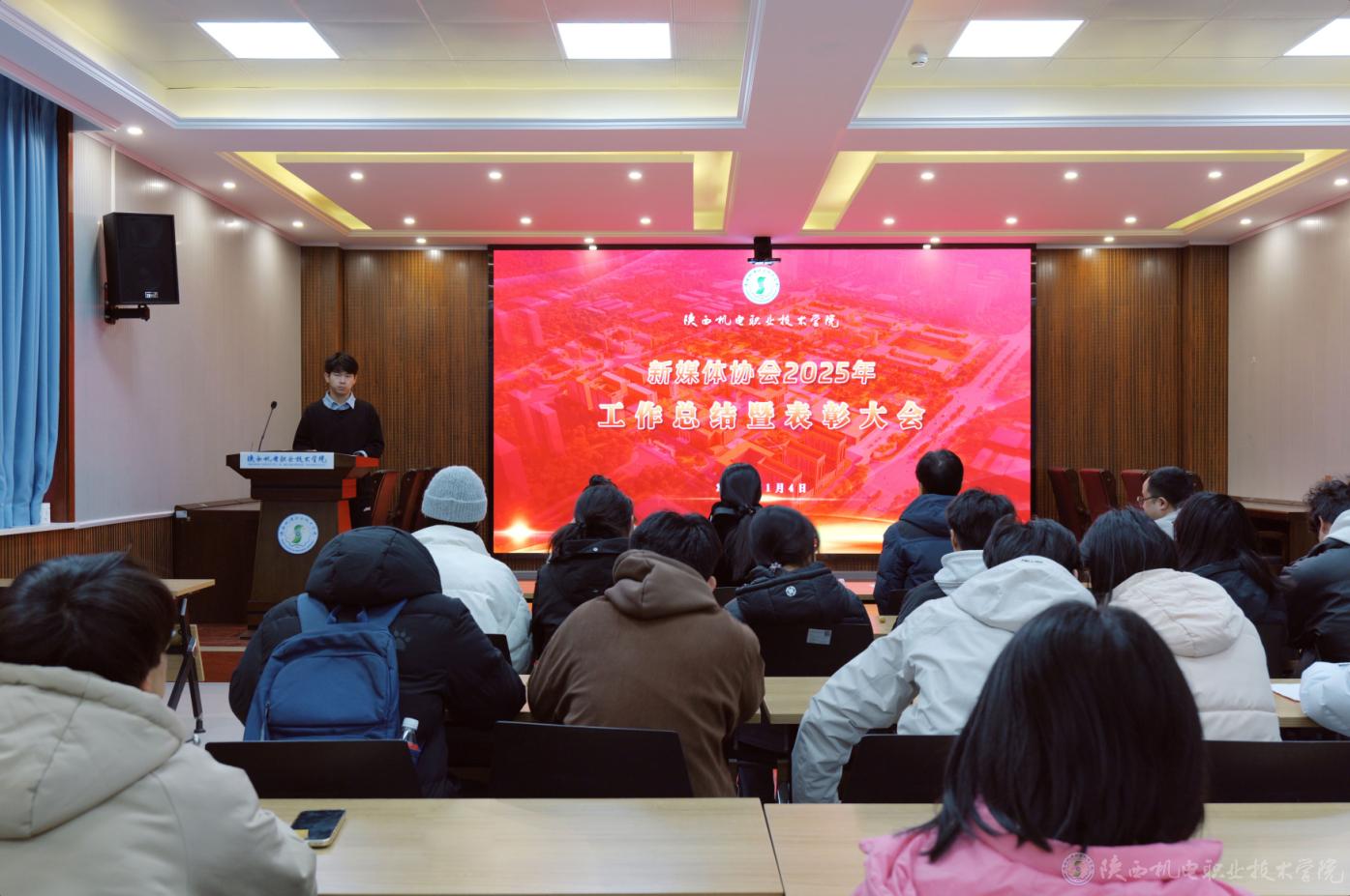1月4日,陕西机电职业技术学院新媒体协会2025年度工作总结暨表彰大会在博学楼111会议室举行。学校党委委员、宣传部部长李明,马克思主义学院综合办公室主任屈婉蓉参加表彰大会。